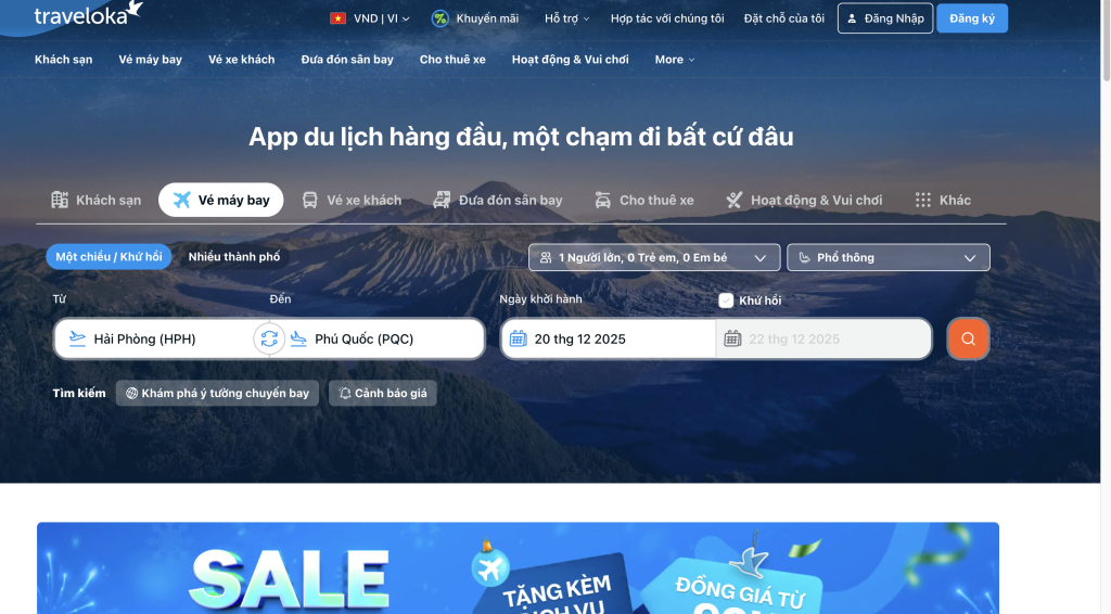 - Đặt vé tại nền tảng uy tín hàng đầu như Traveloka – Nền tảng du lịch hàng đầu Đông Nam Á. Tại đây bạn có thể dễ dàng mua vé máy bay Bamboo Airways trực tuyến cũng như các hãng hàng không khác với mức giá tốt qua các thao tác tiện lợi.